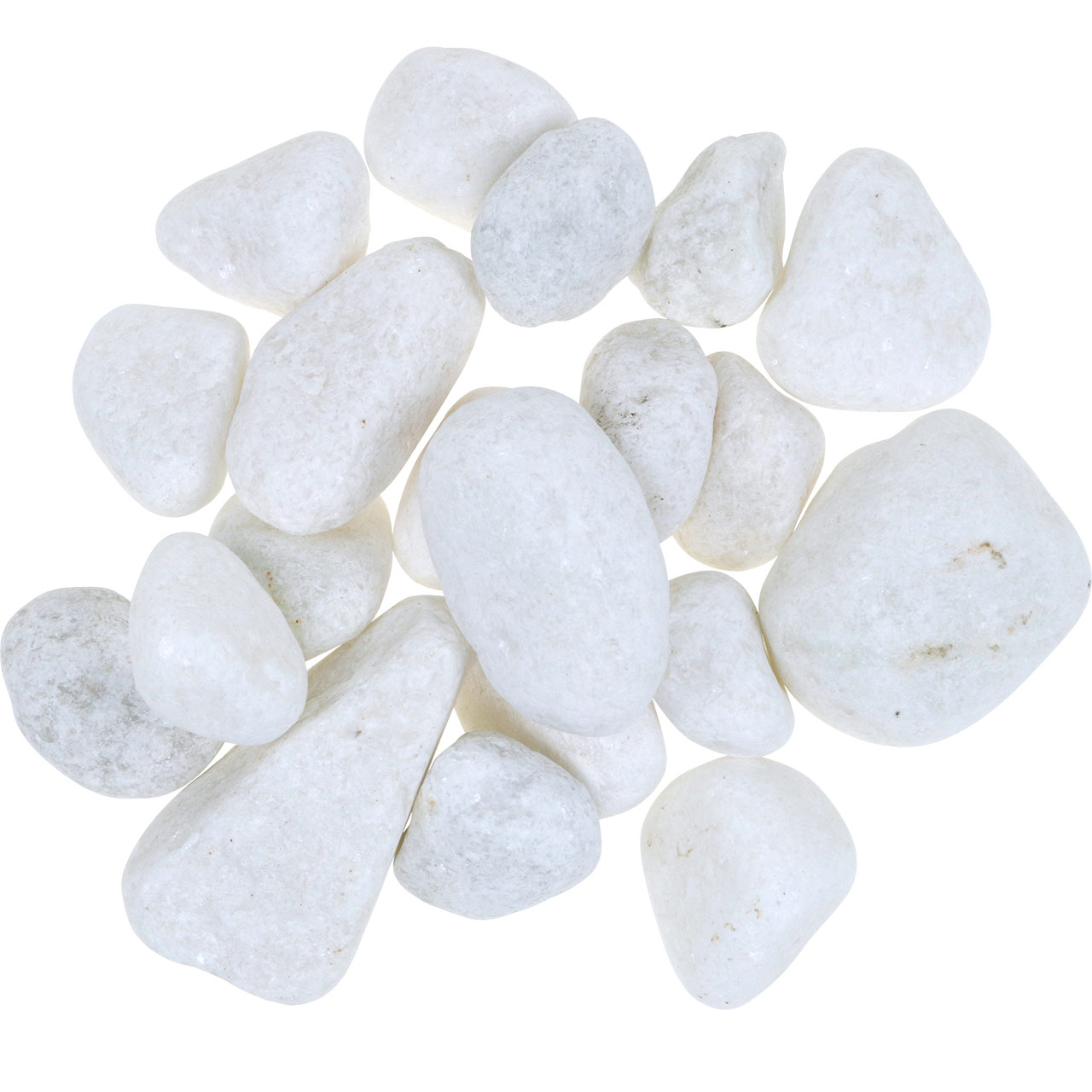 De hvite småsteinene leveres i et netto som veier 1 kg. En omtrentlig størrelse på dekorsteinene mellom 3 og 5 centimeter kan spesifiseres kun for orienteringsformål og uten forpliktelser.