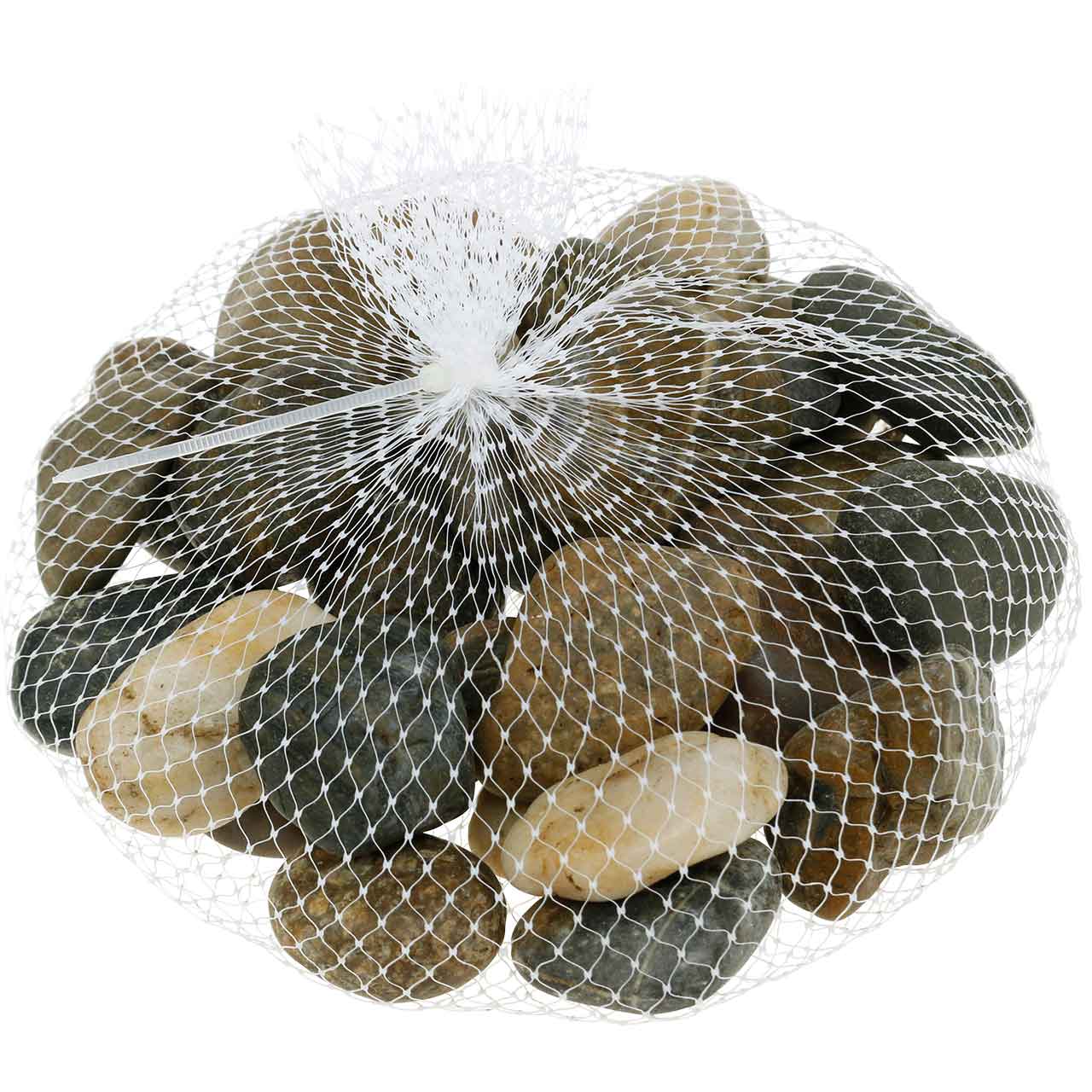 Småsteinene kommer til deg i et praktisk og emballasjebesparende plastnett som inneholder rundt 1 kilo. Ikke-bindende og utelukkende for orientering, størrelsen på disse dekorative steinene kan begrenses til et område mellom 3 og 6 centimeter.
