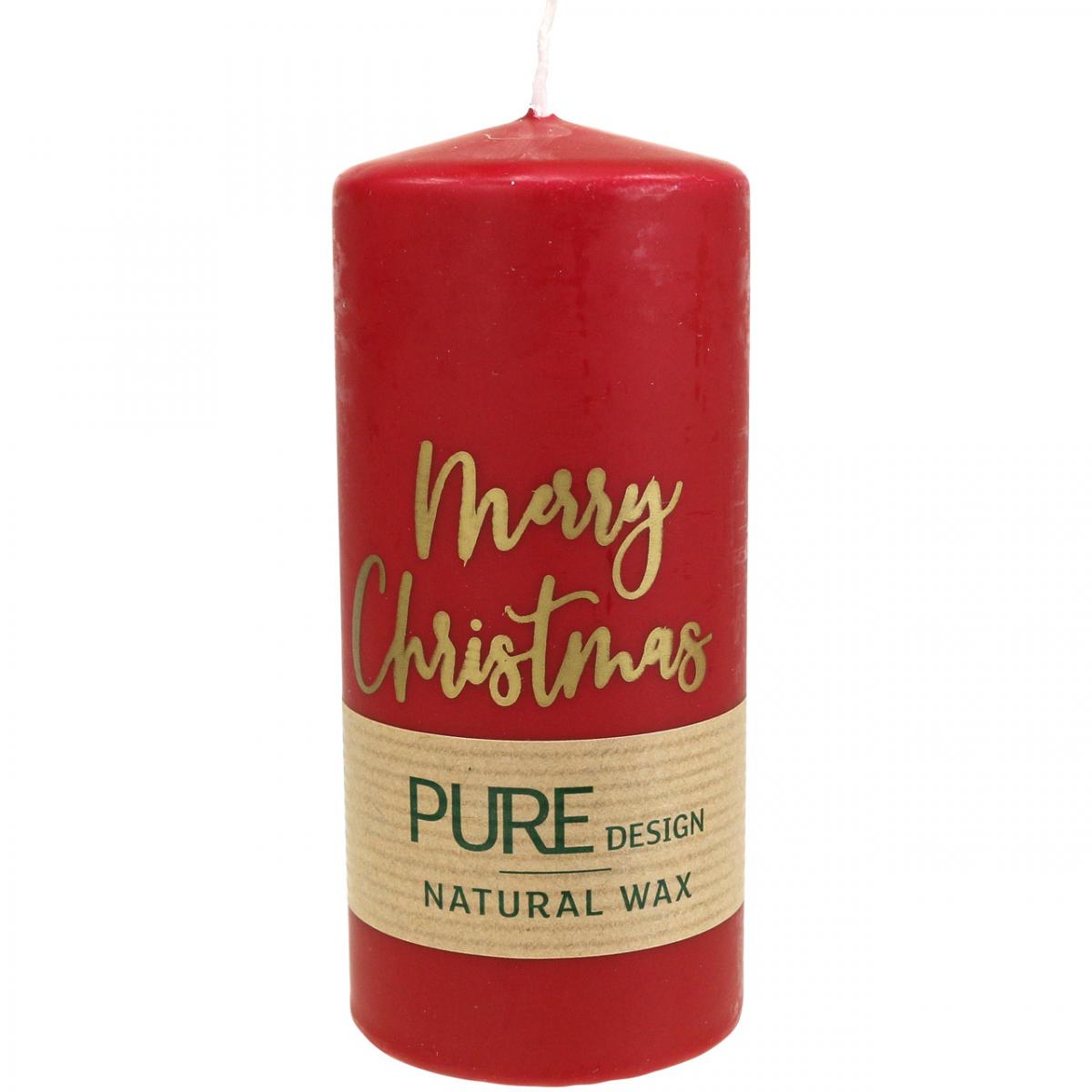 Produktnavn: Røde adventslys «God jul» laget av stearin og rapsvoks til juledekorasjon, sett med 4, 130/60 mm