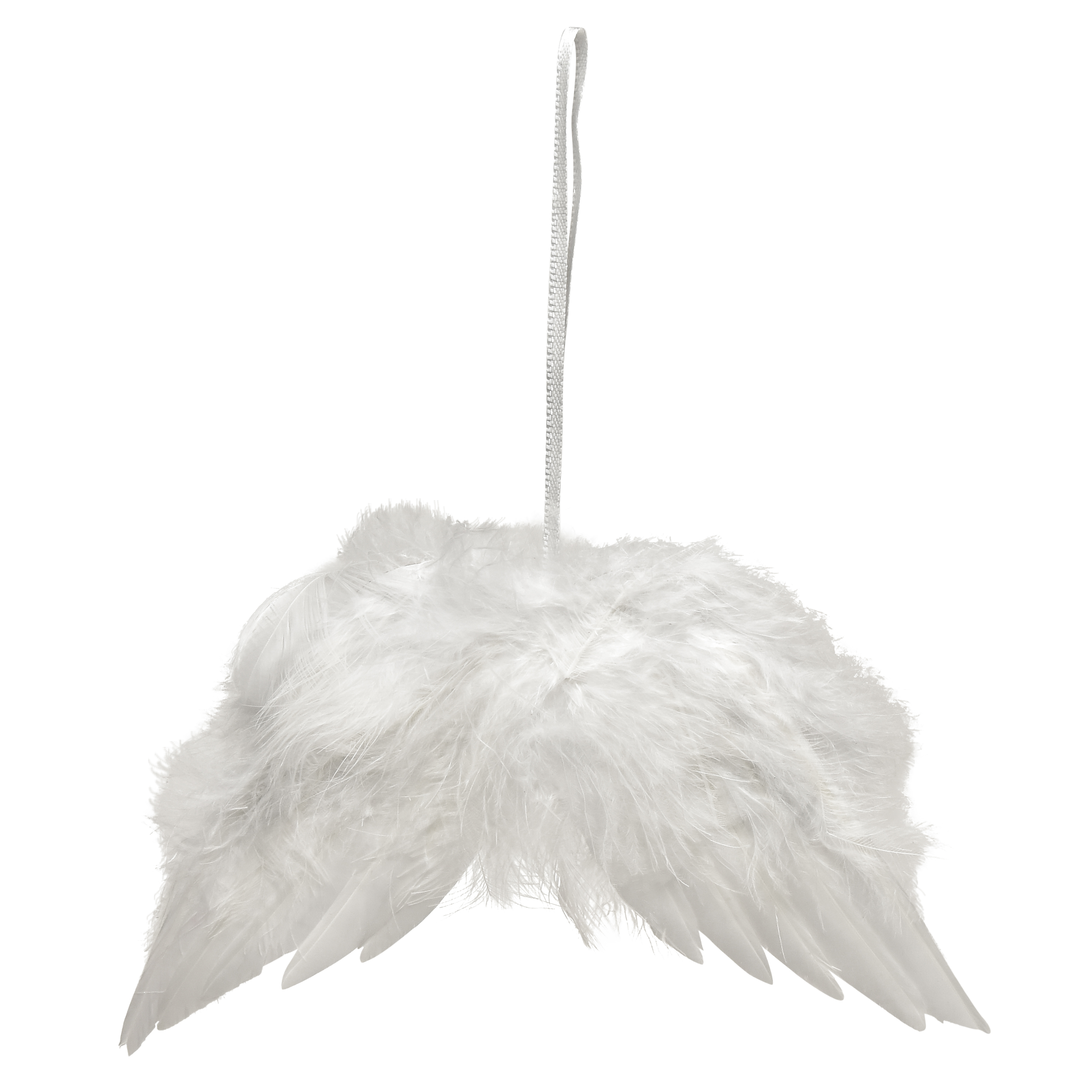 Romantiske englevinger laget av hvite fjær – julepynt til oppheng 20×12cm 6 stk.