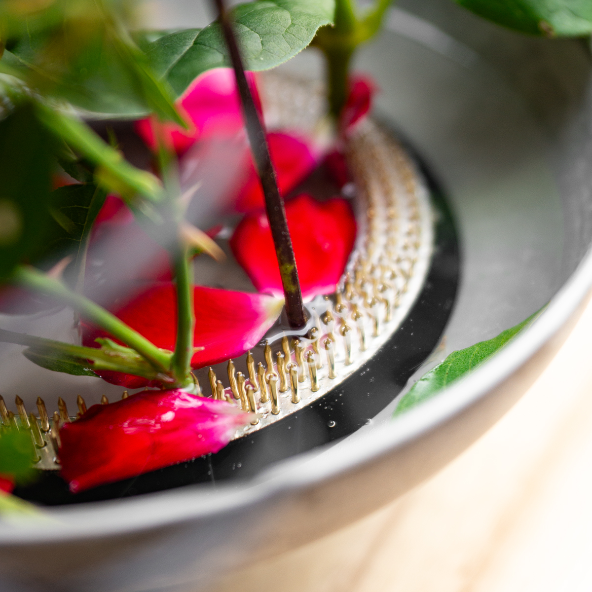 Klassisk Kenzan i ringform – rundt blomsterpinnsvin i messing for perfekte arrangementer