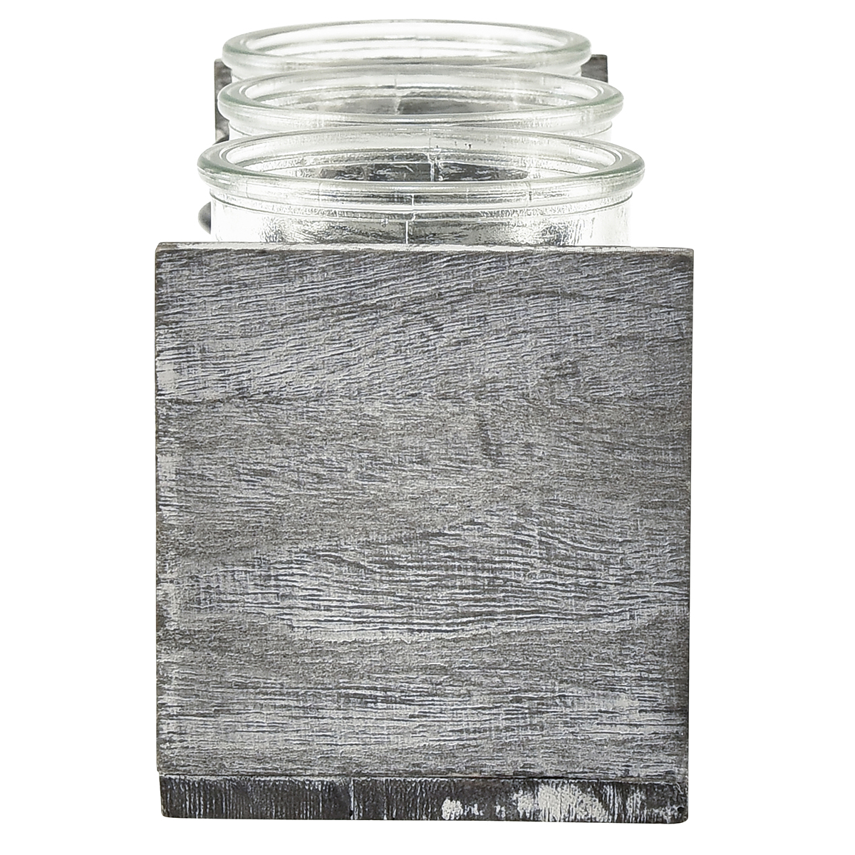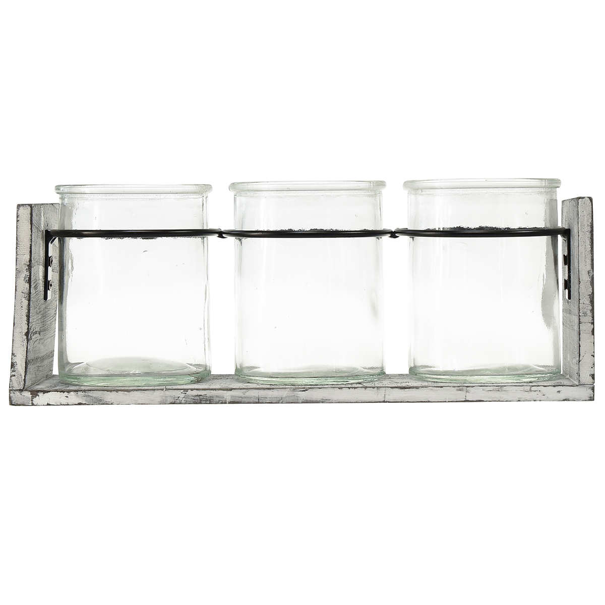 Rustikk glassbeholdersett i grått og hvitt trestativ - 27,5x9x11 cm - Allsidig oppbevarings- og dekorativ løsning