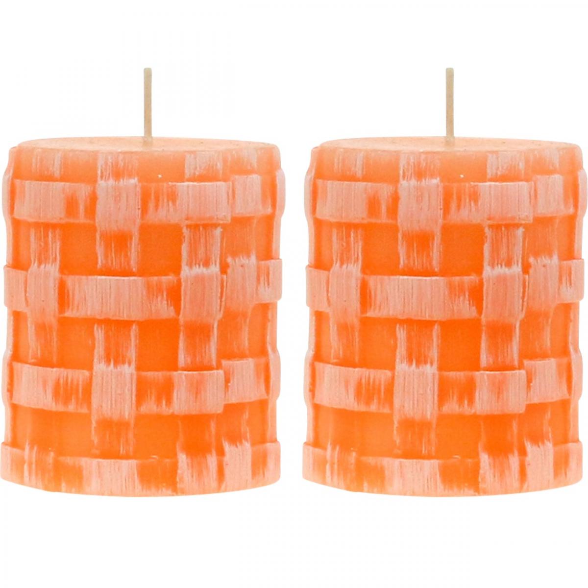 Rustikke kuppellys, oransje, 80/65, selvslukkende, sett med 2, vintagedekorasjon