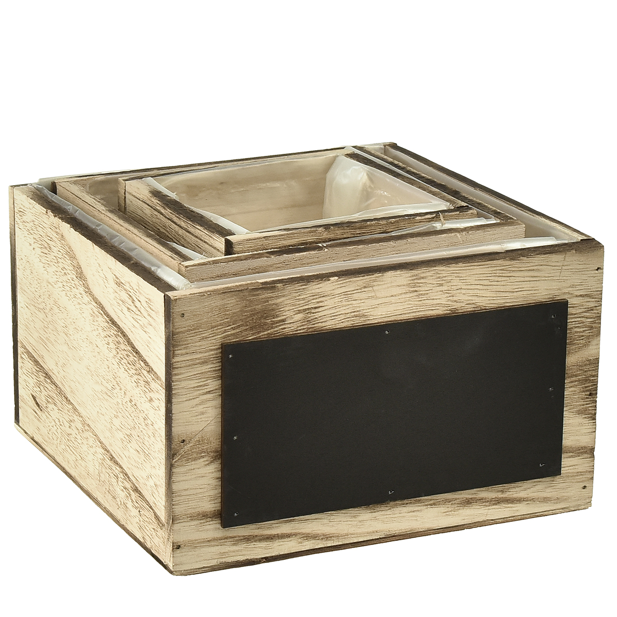 Produktnavn: Rustikke trekasser med tavleoverflater - naturlig og svart, forskjellige størrelser - allsidig organisasjonsløsning - sett med 3