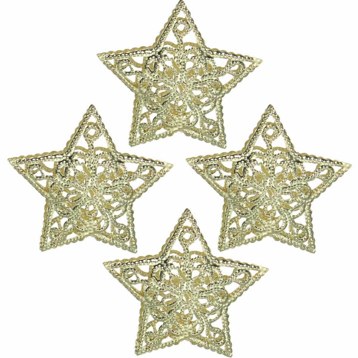 Scatter dekorasjonsstjerner, feste for lys, jul, metalldekor gyllen Ø6cm 20 stk.