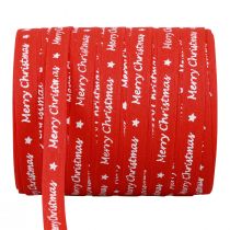Festlig julebånd i rødt med gull 'Merry Christmas' skrift, bredde 25mm, lengde 15m