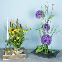 kr 107Denne blomsterstangen for tørkede blomster gir utrolig mange muligheter til å lage en blomsterdekorasjon for enhver anledning på et blunk. Du kan ganske enkelt stikke tørkede blomsterstengler inn i de individuelle forborede hullene på treblomstremsen og på den måten dekorere flotte tørkede blomster til enhver anledning og hver årstid. Hvis hullene i blomsterbrettet er for trange for dine valgte tørkede blomster, kan du bruke et håndbor for å...