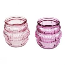 Mer informasjonTelysholder glassdekor lilla rosa Ø7,5cm H7,5cm 2stk