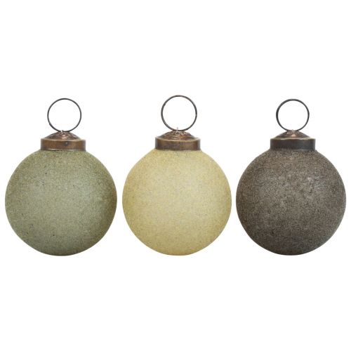 Levering til 30. desember ** 97% positive anmeldelser fra Google Mer informasjonJulekuler, glass, flokket, gul/grønn/grå, Ø6 cm, 3 stk.