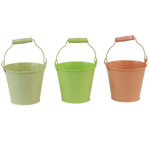 Levering til 3. januar ** 97% positive anmeldelser fra Google Mer informasjonDekorativ potte, metallbøtte for planting, plantekasse med håndtak, rosa/grønn/gul shabby chic Ø14,5cm H13cm sett med 3 stk.
