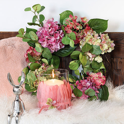 Metalldekorasjonsblomst på trebunn Gammelrosa Sølv H29cm