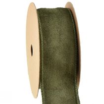 Chiffonbånd grønt stoffbånd med frynser lys olivengrønn 40mm 15m