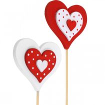 Dekorative plugghjerter rød hvit tredekor 7,5×6,5cm 12 stk