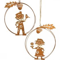Dekorring til jul, reinsdyr i ringen, julenisse med gave, metalldekor patina Ø18cm sett med 2 stk.