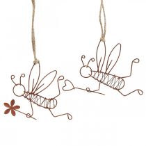 Bee å henge opp rust deco metall sommerpynt 12cm 6stk