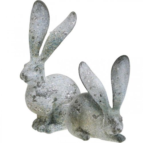 Dekorativ kanin, hagefigur i betonglook, shabby chic, påskedekorasjon med sølvdetaljer H21/14cm, sett med 2