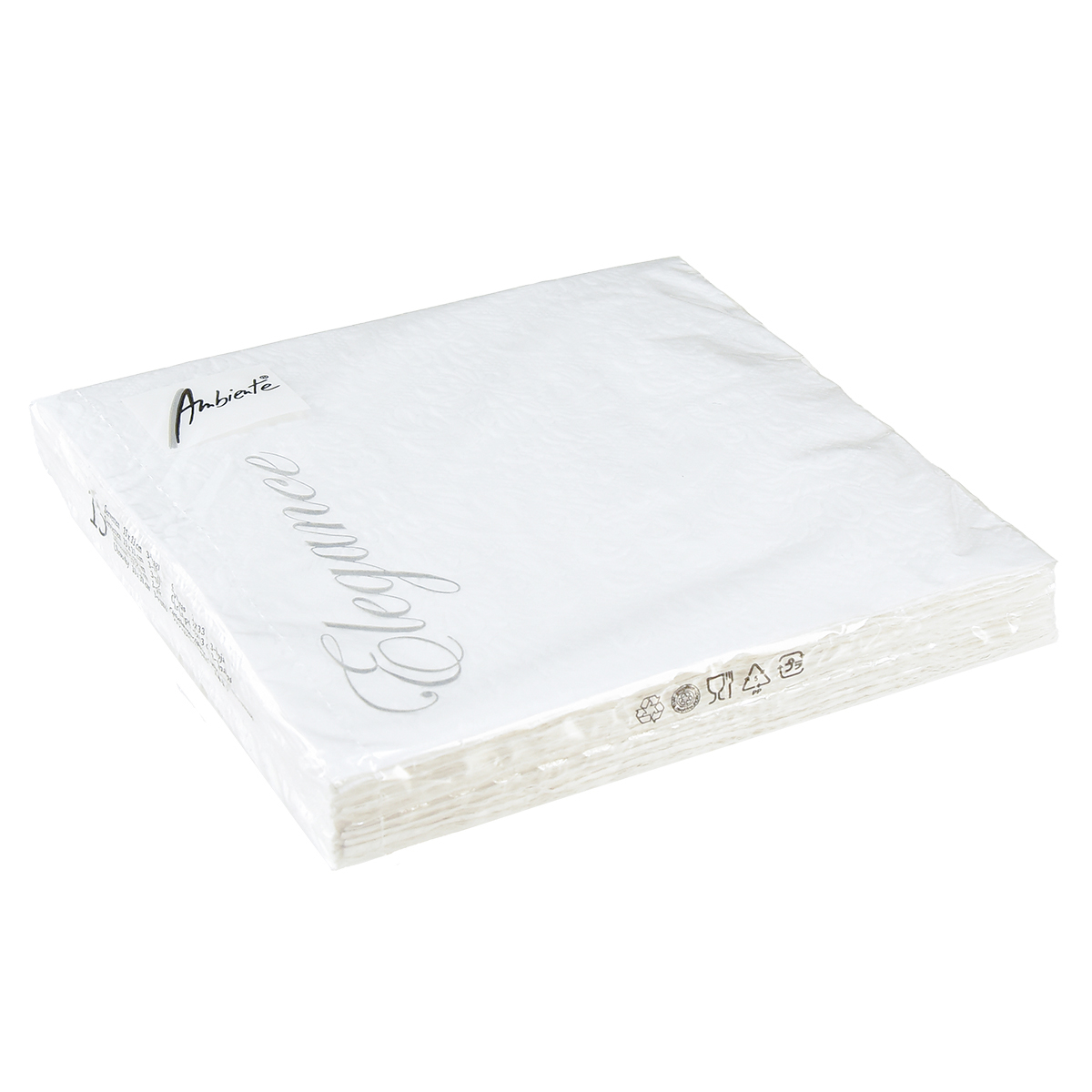 Du vil motta de hvite serviettene i pakker med 15 stk.