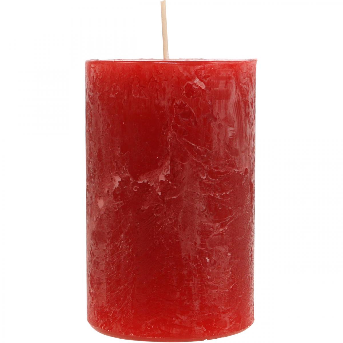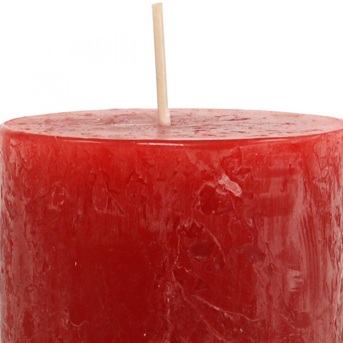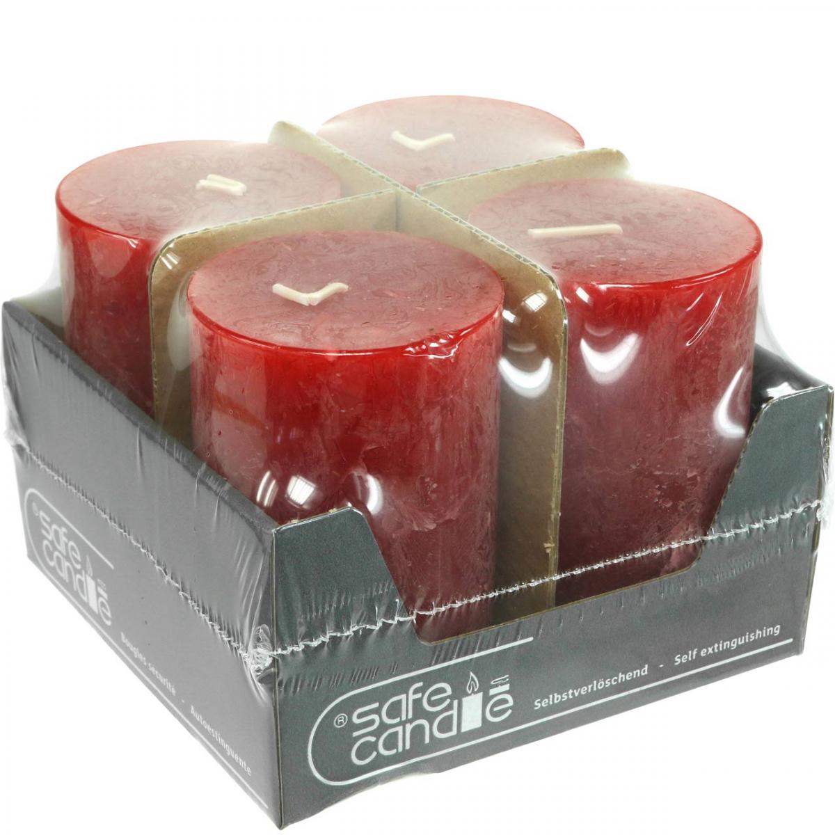 Produktnavn: Sett med 4 røde adventslys, sikkerhetssøylelys, rustikk stil, 70/110 mm, til julepynt