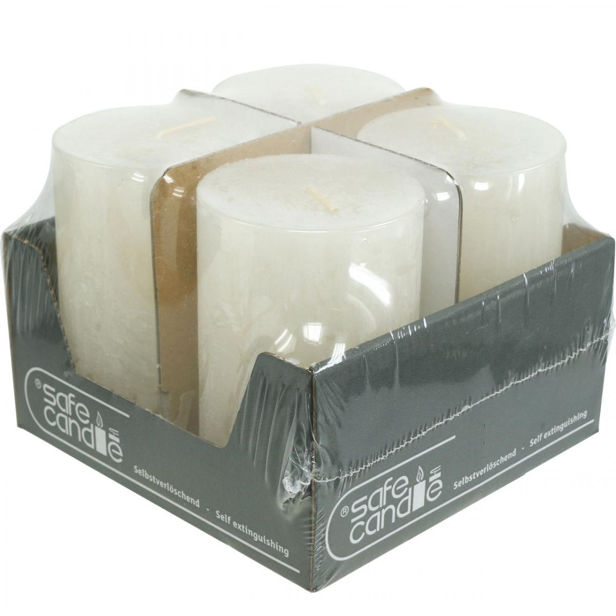 Sett med 4 rustikke kuppellys, off-white, 70x110 mm, gjennomfarget, selvslukkende - Ideelt for advent og festlig dekorasjon