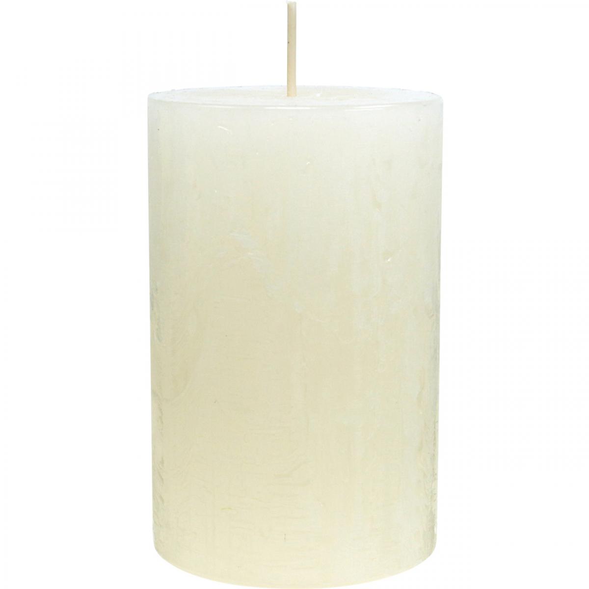 Produktnavn: Sett med 4 rustikke kuppellys, off-white, 70x110 mm, gjennomfarget, selvslukkende - Ideelt for advent og festlig dekorasjon