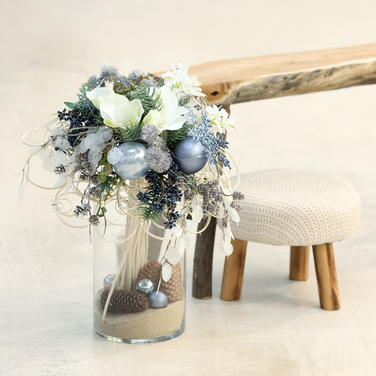 Hvem elsker vel ikke et juletre som gløder i glitrende farger? Vårt blå/sølvfargede kulesett bringer nettopp den festlige magien inn i hjemmet ditt. Kombinasjonen av matte og blanke overflater i delikat blått og elegant sølv vil lyse opp ethvert tre. Tenk deg hvordan lysrefleksjonene fra lyslenken din vil lyse opp disse elegante glasskulene – nesten som et lite eventyrland. Enten det er til tradisjonelt dekorerte trær eller moderne vinterblomsteroppsatser, er disse kulene rett og slett perfekte. De er også perfekte til festlig borddekking eller vinterblomsteroppsatser. Hvorfor ikke bruke dem som kreative gavelapper? Fantasien setter grenser!