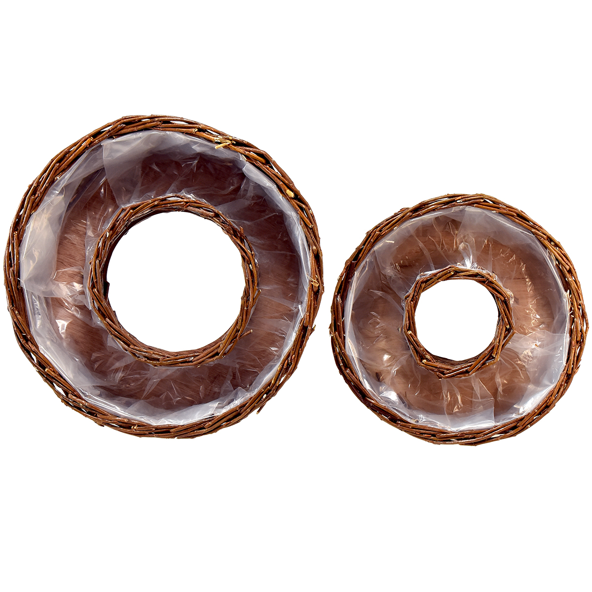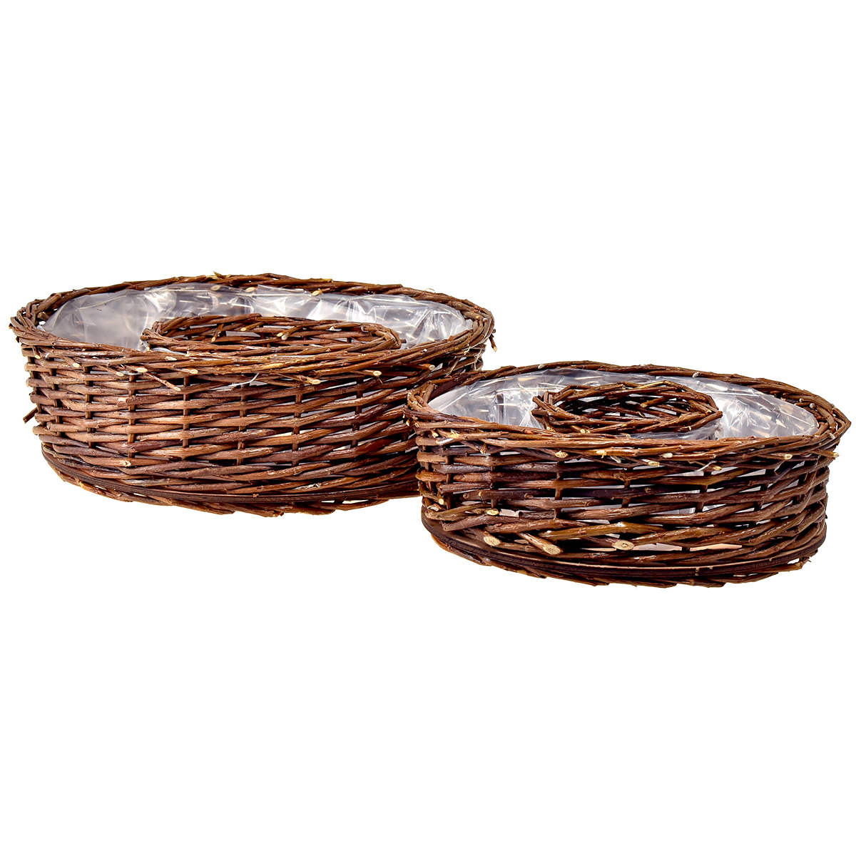 - To runde planteringer laget av piletremateriale i forskjellige størrelser
