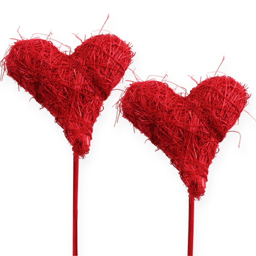 Sisalhjerte 5cm rødt på pinne 24 stk