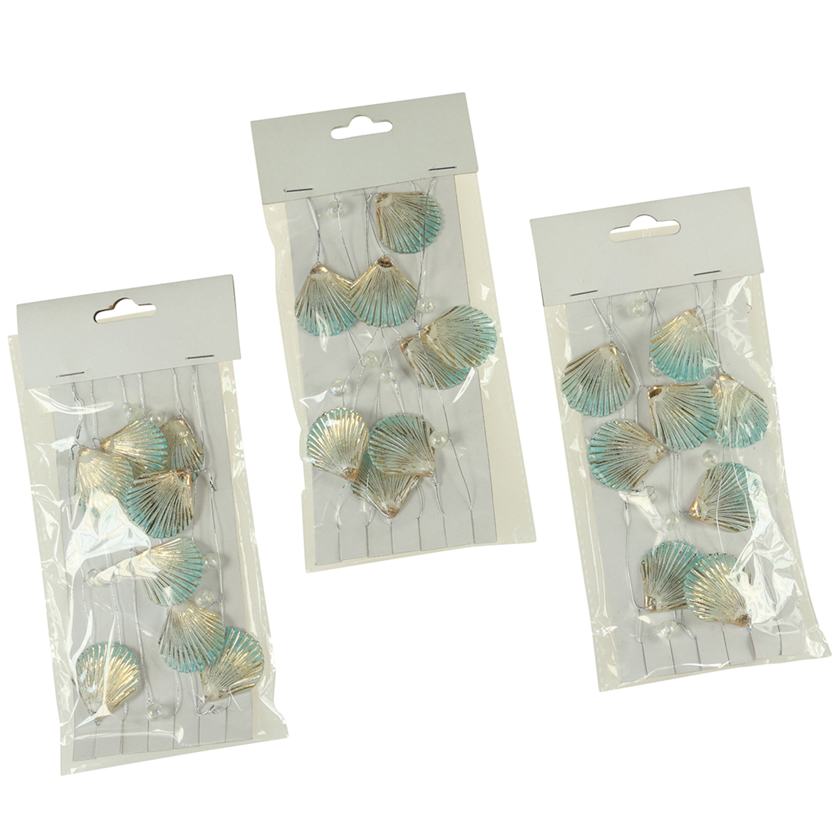 Du vil motta skallkransen med turkis-gull kunstige skall med perler på 3 stykker i en pakke.