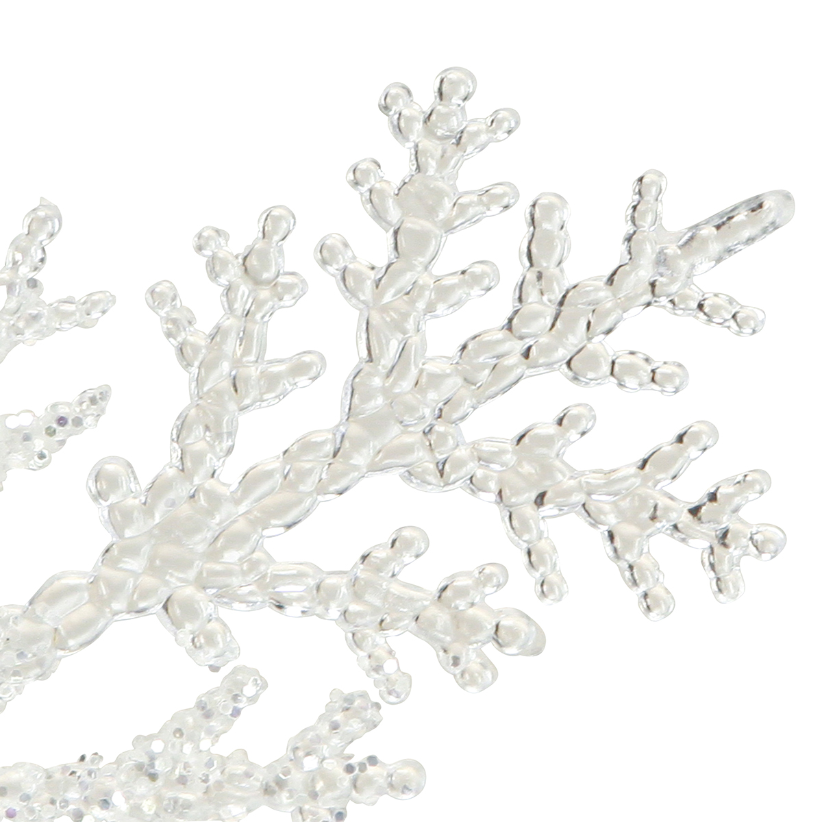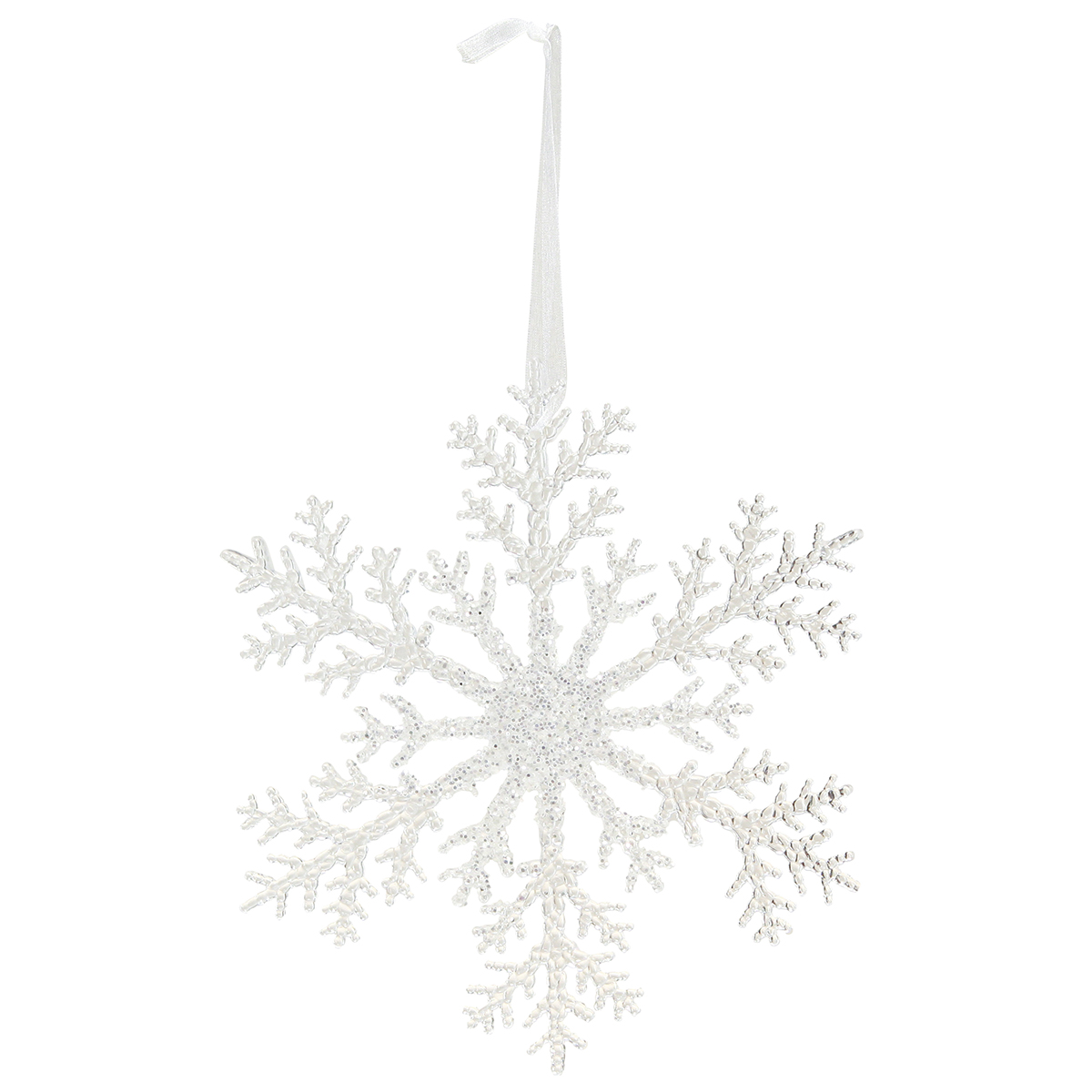 Nyt de glitrende kunstige snøfnuggene, som er ideelle for å henge opp som juledekorasjon. De detaljerte, gjennomsiktige iskrystallene skinner med sølvglitter og kommer hjem til deg med elegante hvite organzabånd - klare til å forvandle ethvert rom til et lite vinterlandskap.