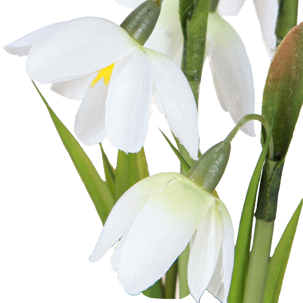 Slik er vårpynt gøy: den kunstige snøklokken i glasset ser ut som om den nettopp hadde spiret fra jorden i de første varme solstrålene. Med sine tre blomster og grønne blader fanger disse kunstige blomstene i hvitt den tidlige våren på en svært realistisk måte.