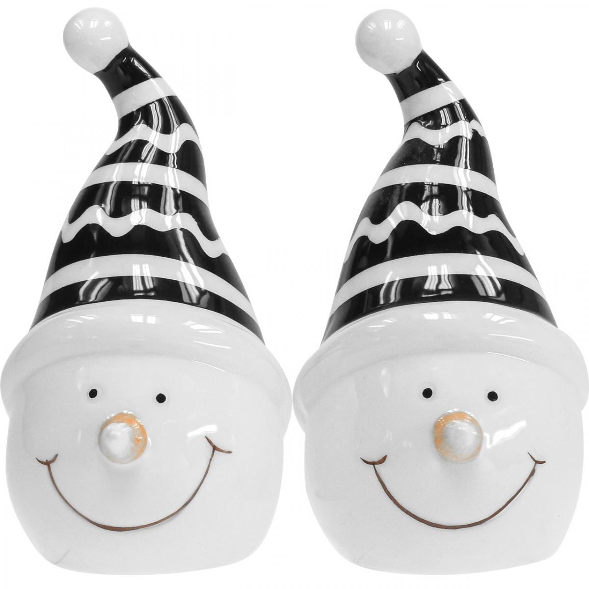 Snømannfigurdekorasjon keramikk svart og hvit 12,5 cm 3 stk