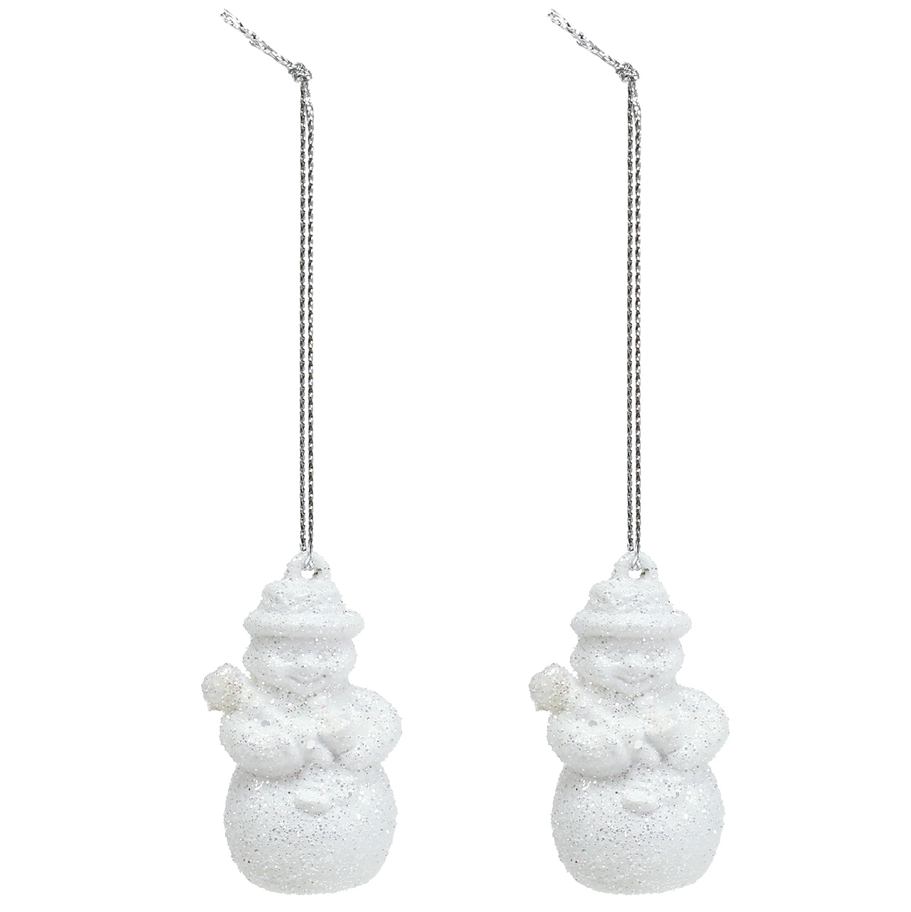 Snømannhvit med glimmer som henger 4,5cm 12stk