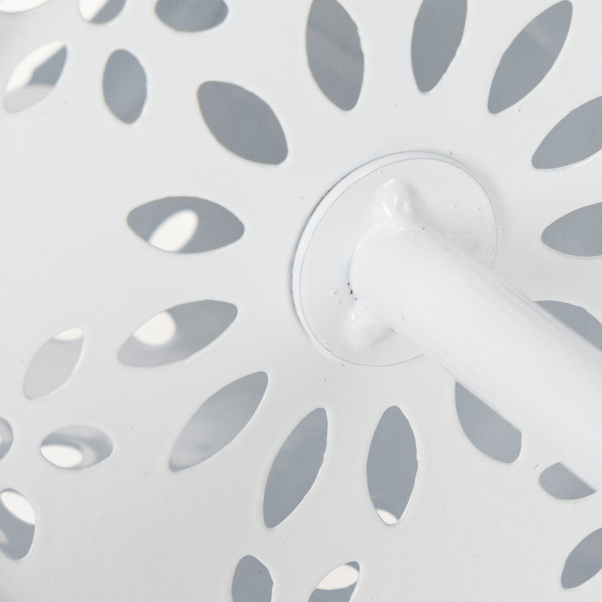 Denne solcelledrevne bordlampen med blomstermønster er mer enn bare en lyskilde. Den er et sant stilikon for uterommet ditt! Laget av metall av høy kvalitet og overflatebehandlet i elegant hvitt, utstråler den et sofistikert preg som er både moderne og lekent. De intrikate blomstermønstrene på lampeskjermen er ikke bare dekorative, men projiserer også vakre lysspill på omgivelsene dine om kvelden – rett og slett magisk! Enten det er for en koselig kveld på terrassen eller som en sjarmerende borddekorasjon på en hagefest, vil denne lampen gjøre uterommet ditt enda mer innbydende.