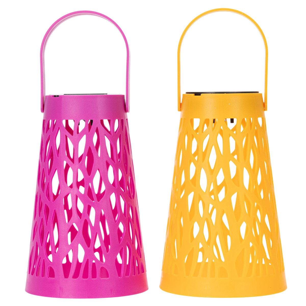 Dette settet med to lykter – en i munter rosa og den andre i livlig gul – vil lyse opp uteområdene dine. Det moderne utseendet til disse LED-lyktene, laget av delikat, perforert plast, komplementerer en sommerlig atmosfære perfekt og passer sømløst inn i nesten enhver hagestil. Det varmhvite lyset fra LED-lysene skaper en myk, innbydende glød uten gjenskinn, noe som gjør disse lyktene til et allsidig og elsket tillegg til utendørsdekorasjonen din. Oppdag hvor enkelt det kan være å få hagen din til å skinne!