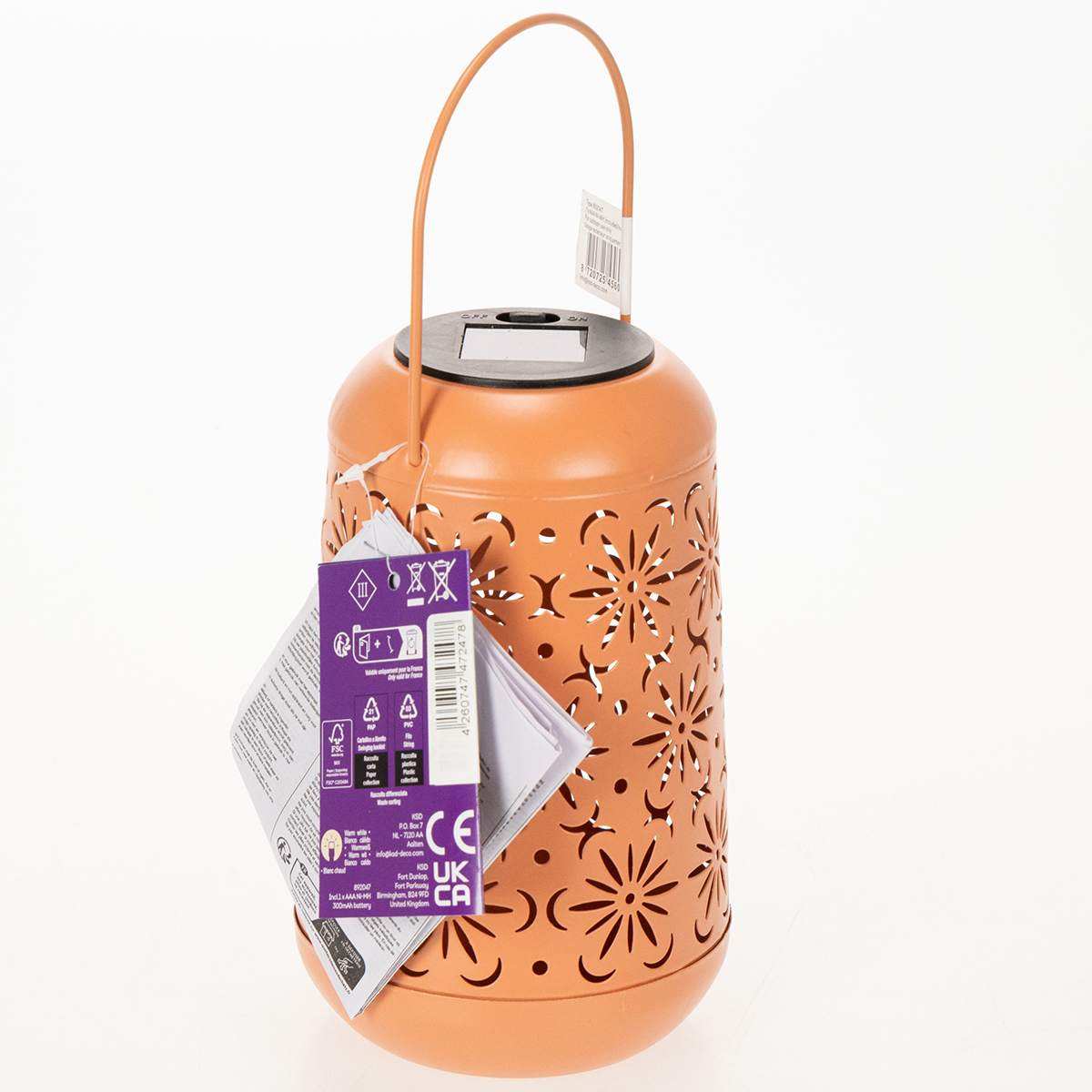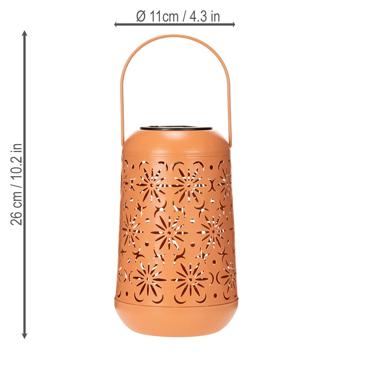 Med sitt varme lys og blomstermønster skaper denne solcellelykten en innbydende atmosfære i ethvert uterom. De delikate blomsterdesignene gir hagen et snev av eleganse og et hint av bohemsk stil. Det høykvalitets håndverket i en subtil oransje fargetone harmonerer perfekt med både moderne og klassiske hagestiler. Enten du vil skape romantiske lysaksenter på lune sommerkvelder, dekorere terrassen din med stilig belysning eller leter etter en dekorativ løsning til en hagefest – denne utendørs solcellelykten er mer enn bare en lyskilde. Den er et høydepunkt i ethvert uteområde.