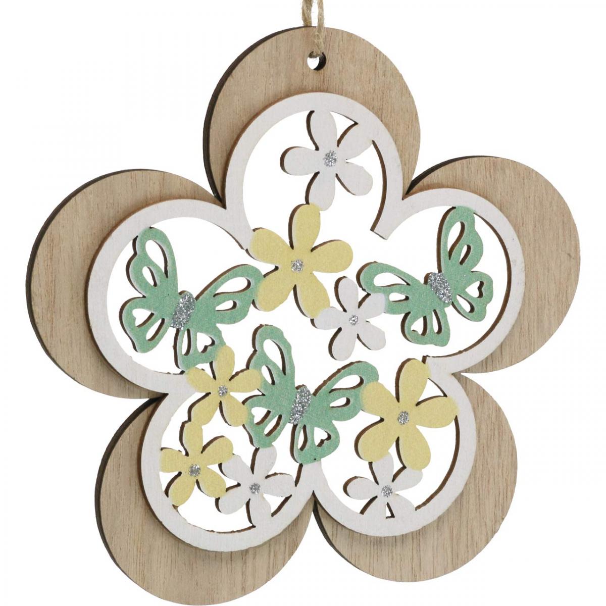 Produktnavn: Sommerfugl til å henge, anhengsblomst i tre, vårdekorasjon med glitter H11/14,5cm 4stk