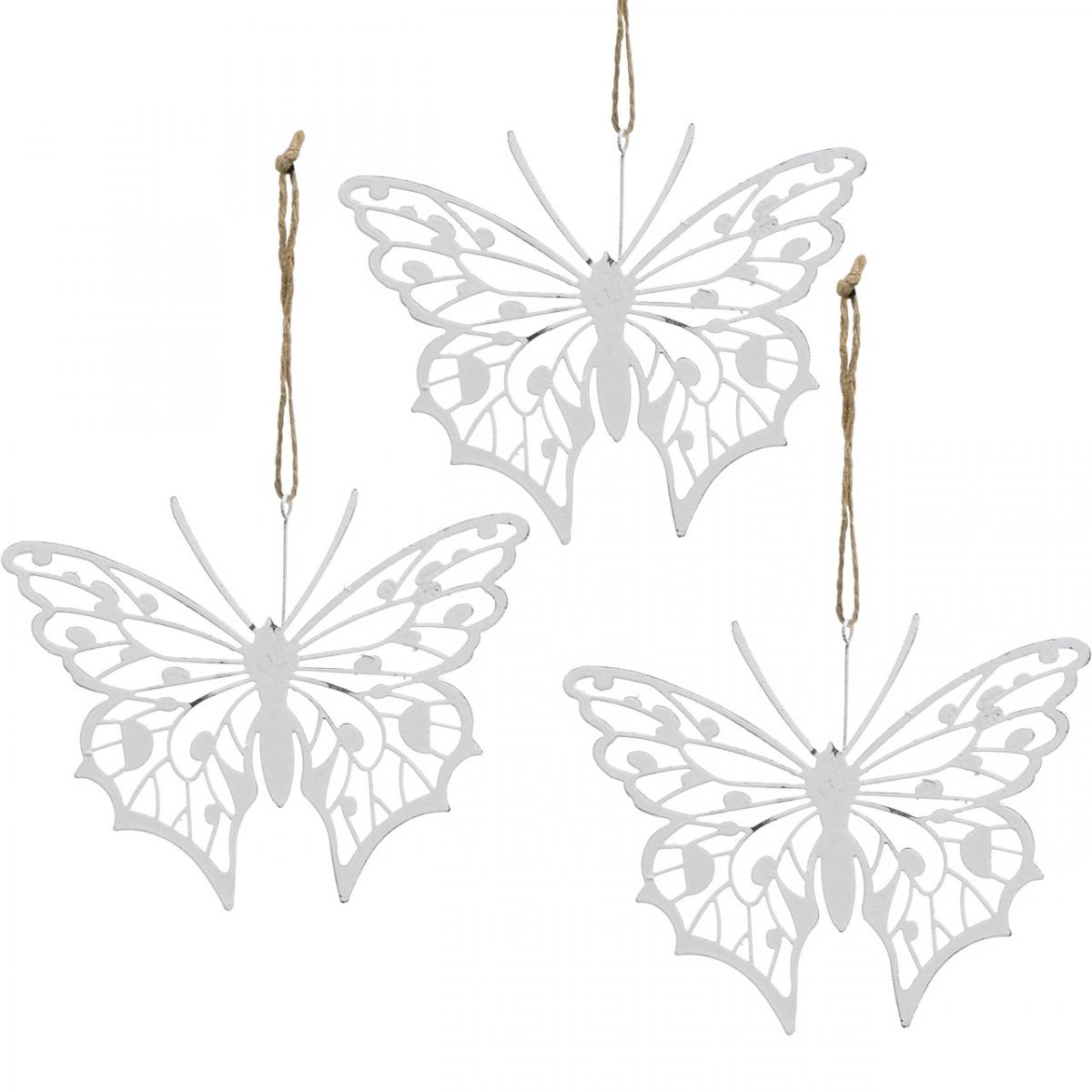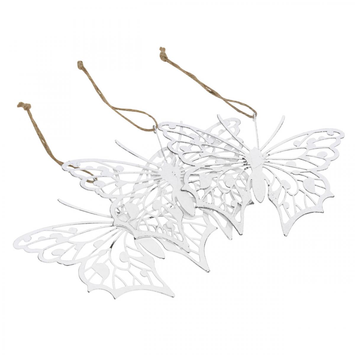 Sommerfugldekor hengende vintage metalldekor hvit 15×12cm 3 stk