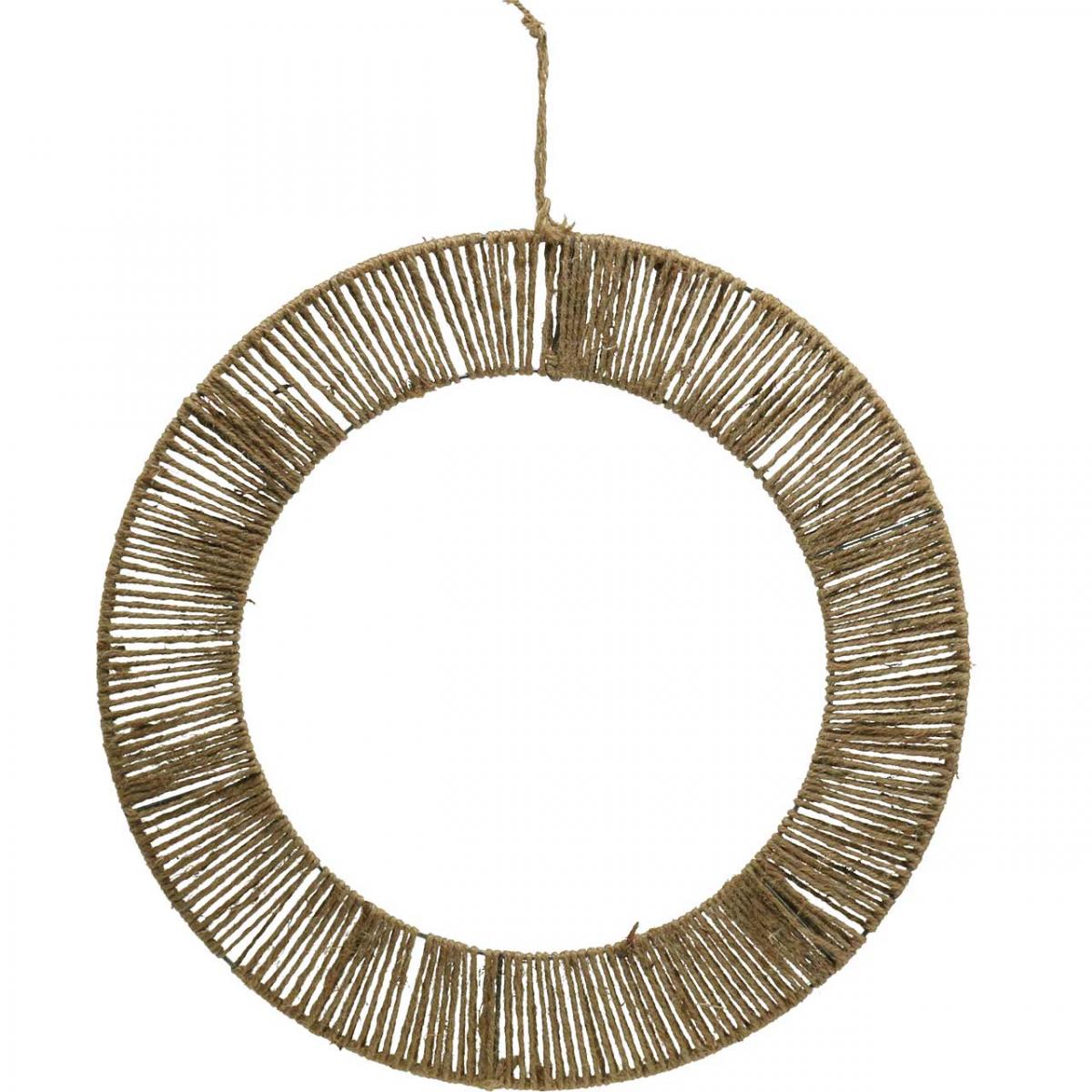 Sommerveggdekorasjon, bohemsk stil, jute og metall, Ø49 cm, hengende dekorasjon, tørket blomsterkrans, vintagestil