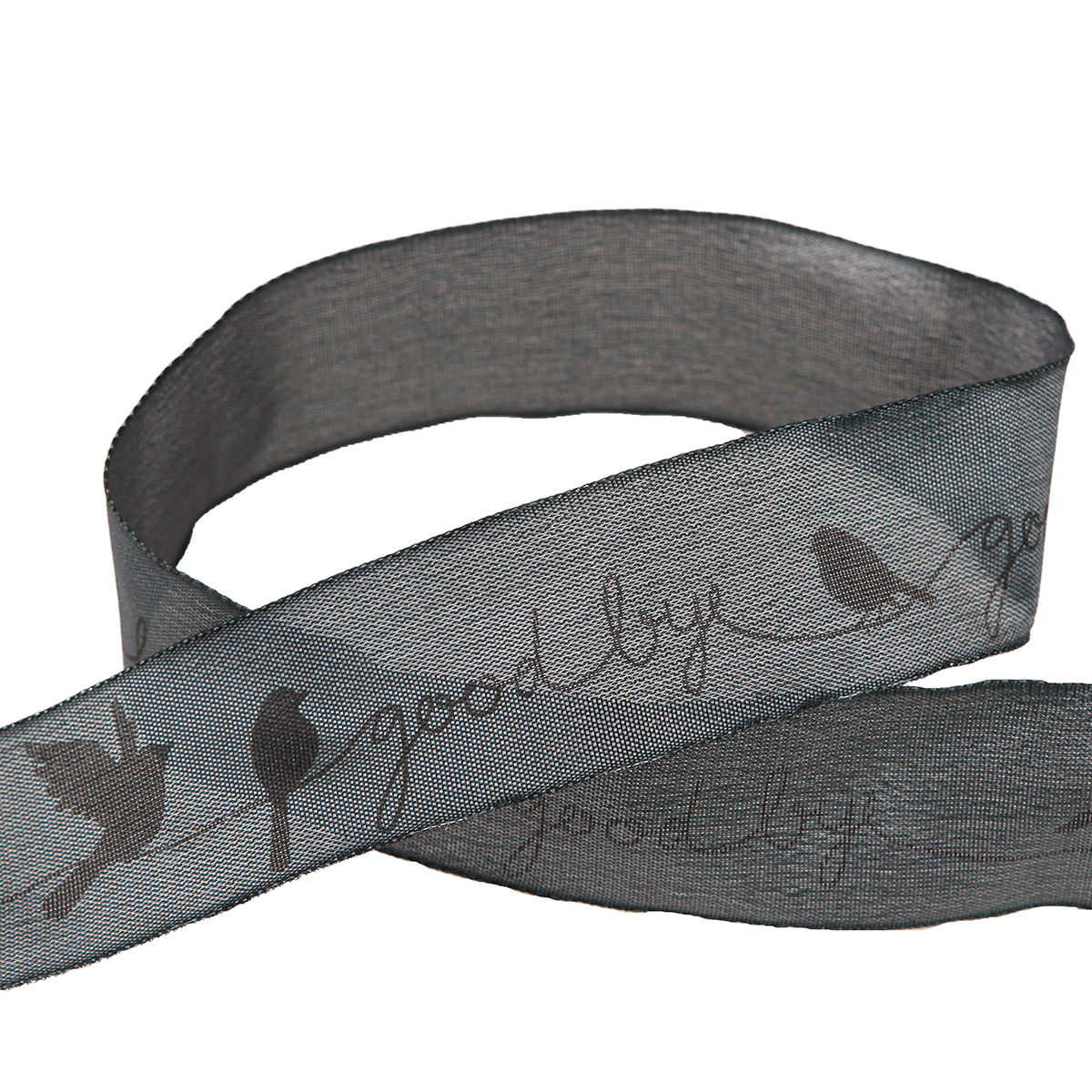 Sørgebånd Farvel organzabånd fugler sort 40mm 20m