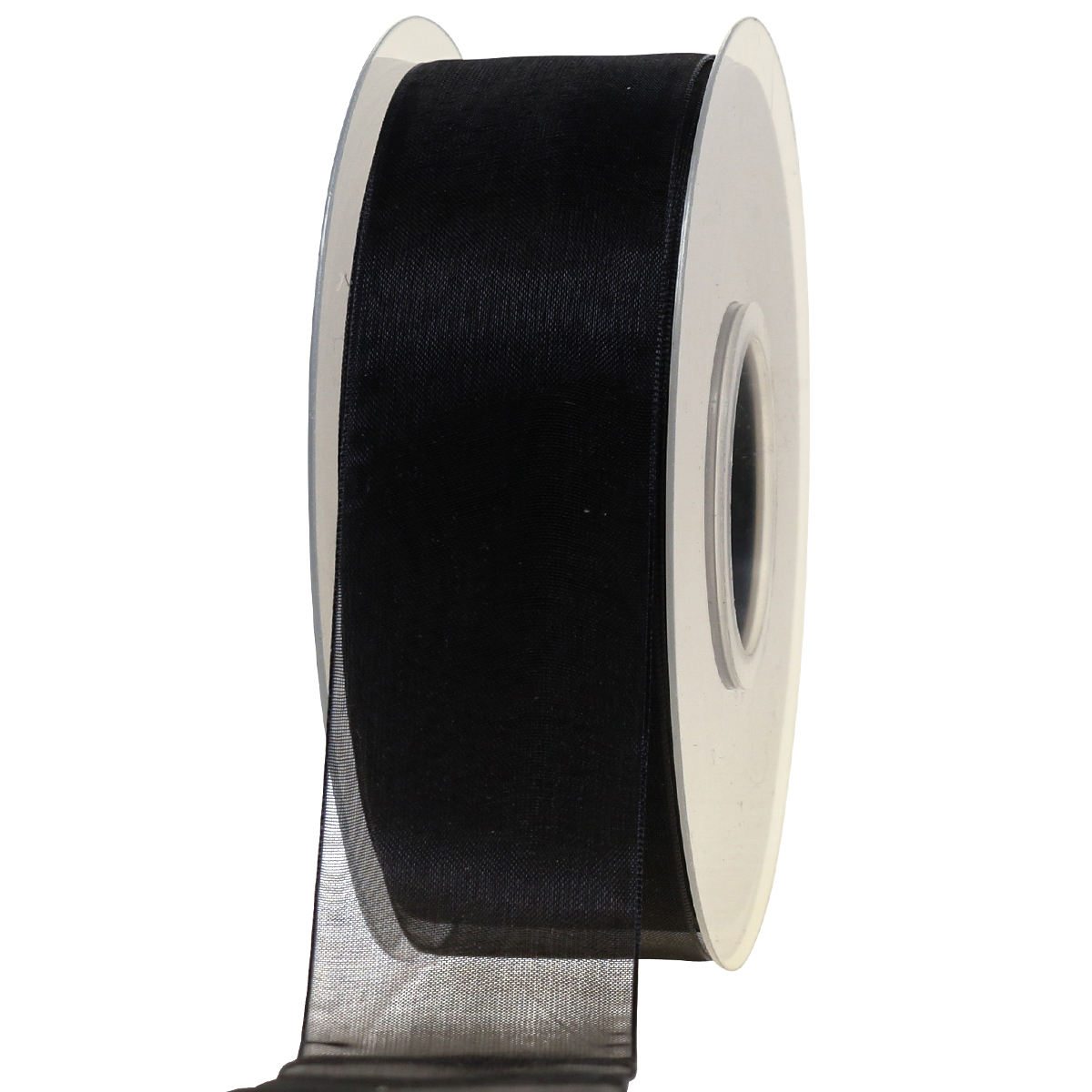 Sørgeorganzabånd med selvage sort 40mm 50m