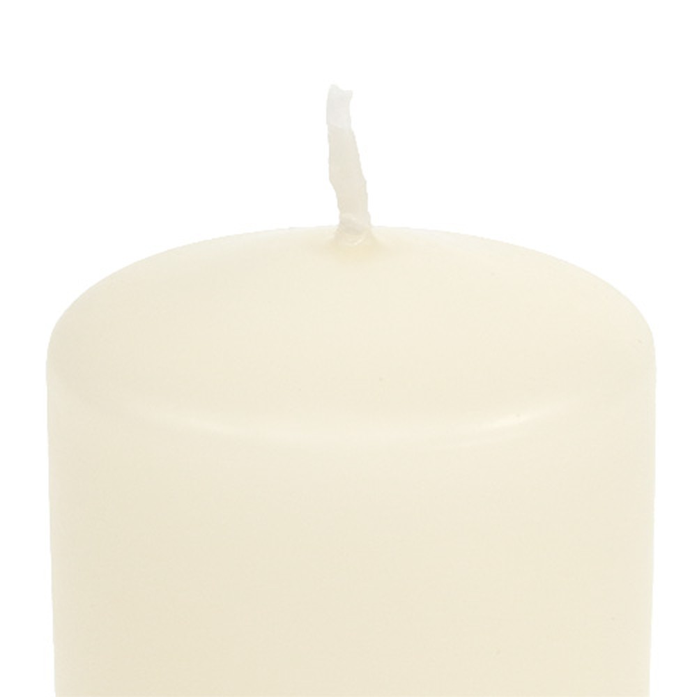 Søylelys i krem leveres som et sett på totalt 4. Hvert lys har en høyde på omtrent 130 millimeter og en diameter på omtrent 100 millimeter. Forbrenningstiden er omtrent 83 timer.