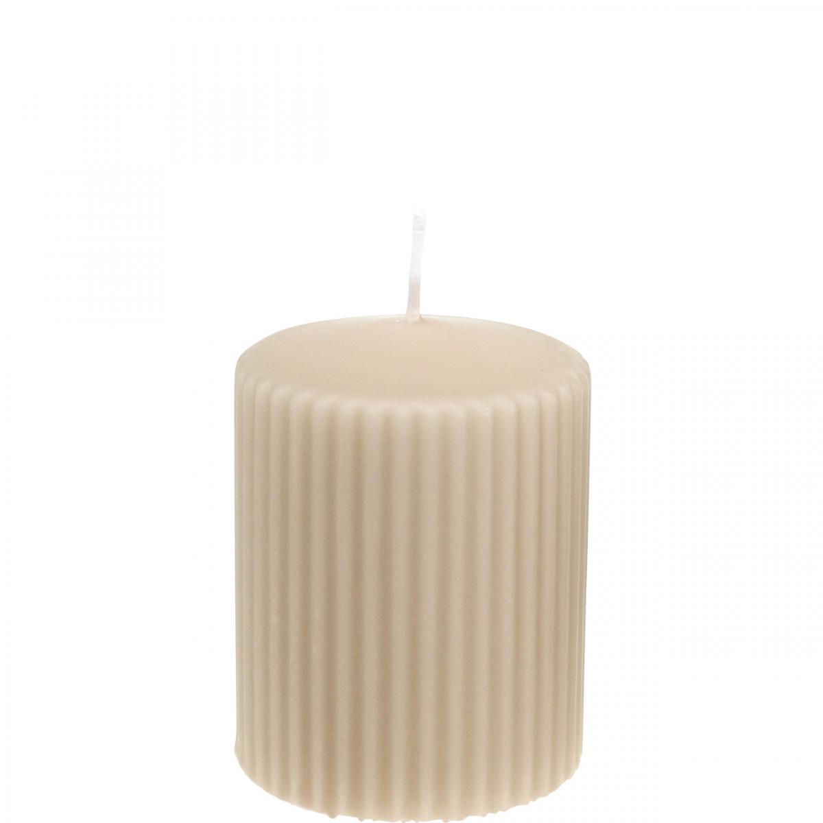 Søylelys beige rillet lys 70/90mm 4 stk