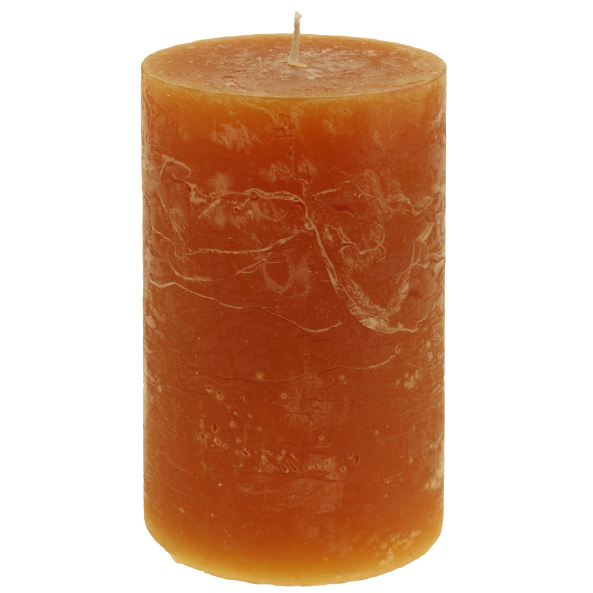 Søylelys, mørk oransje, ensfarget, solnedgangsdesign, 60x100mm, 4 stk., rustikk, sommer, høst, advent