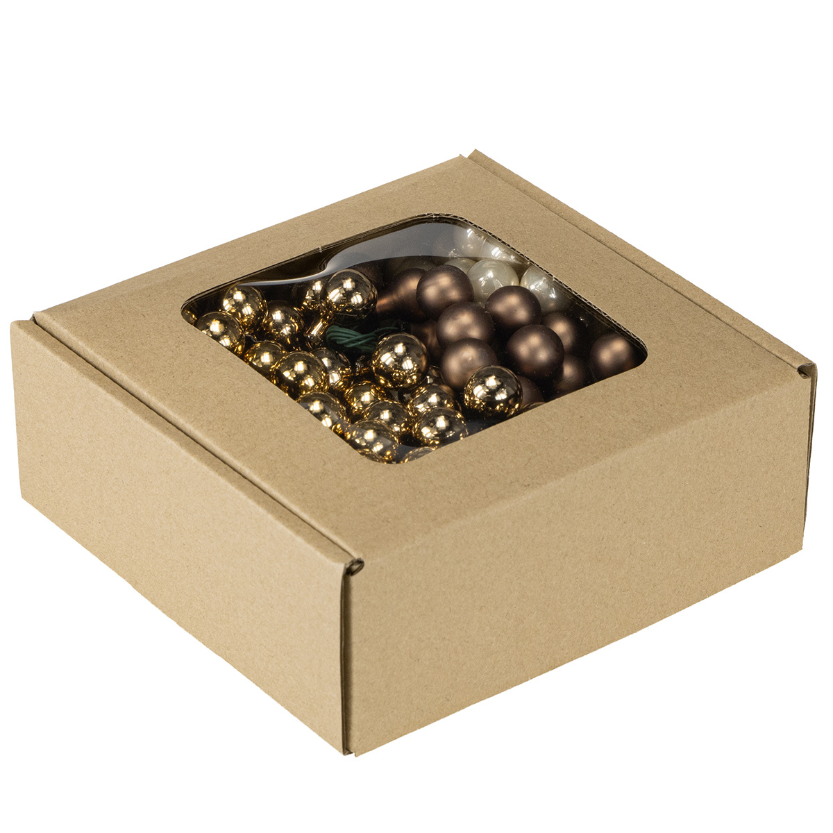 Speilbærene i brunt og gull er i et sett på 140 stykker med totalt 4 forskjellige farger i like store deler: gammelt gull, hvitt og grønnbrunt i blankt og fawnbrunt i matt. De små glasshodene har alle en diameter på rundt 1,5 centimeter, og inkludert den grønne håndverkstråden, en størrelse på rundt 15 centimeter.