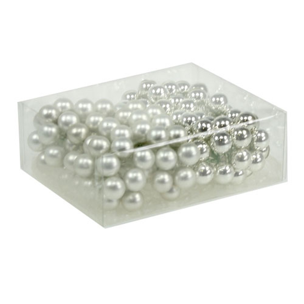 Speilbærene i en sølvblanding tilbys i en eske med totalt 140 stykker. Med ledningen har du en total lengde på ca 15 centimeter. Glasskulene har en diameter på rundt 20 millimeter.