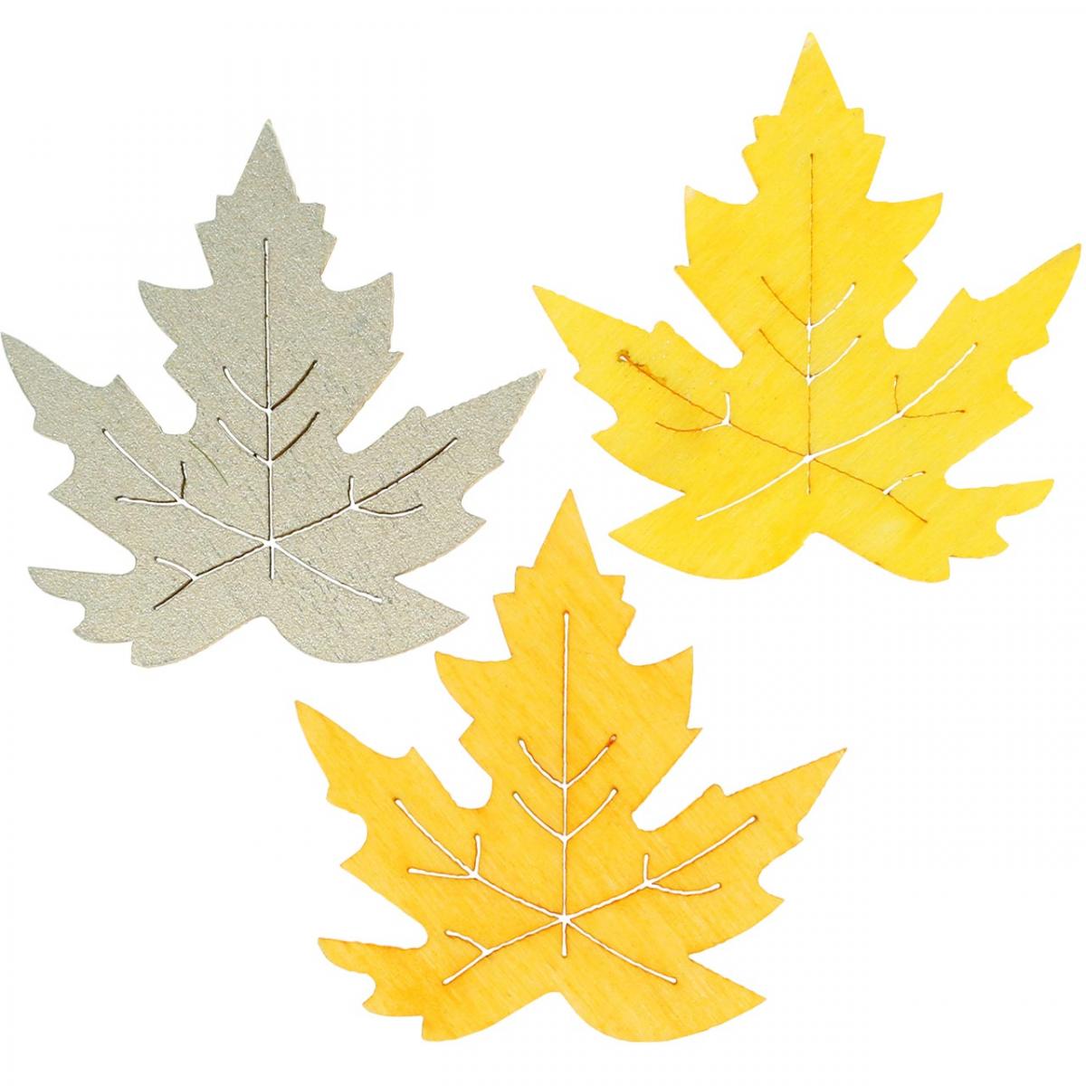 Produktnavn: Spred dekorasjon høst, lønneblader, høstblader gylne, oransje, gule 4cm 72 stk.