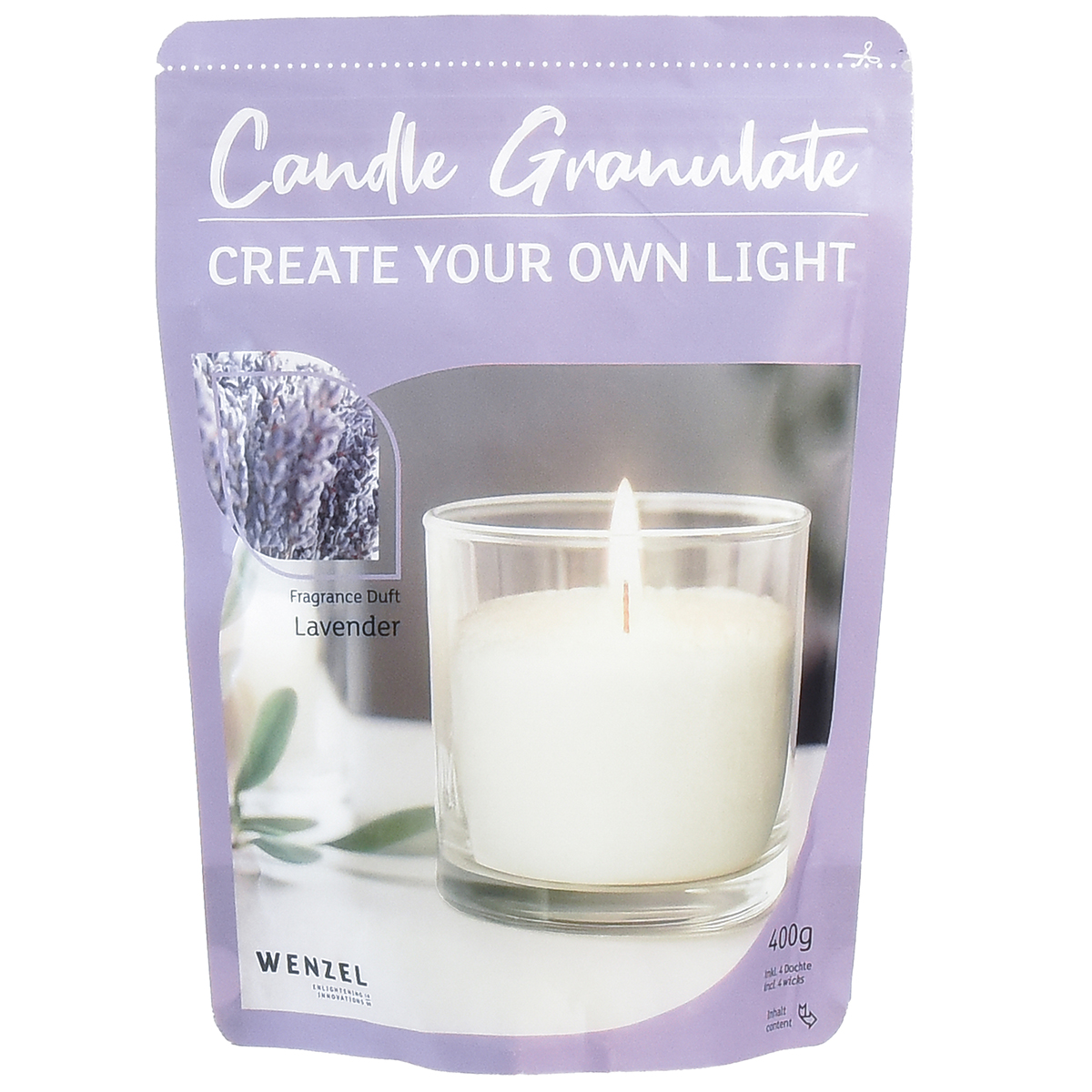Stearinlys sand voksgranulat med veke duftende lavendel 400g