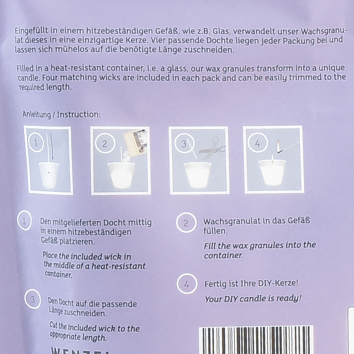 - ? 400g høykvalitets voksgranulat for stearinlys
