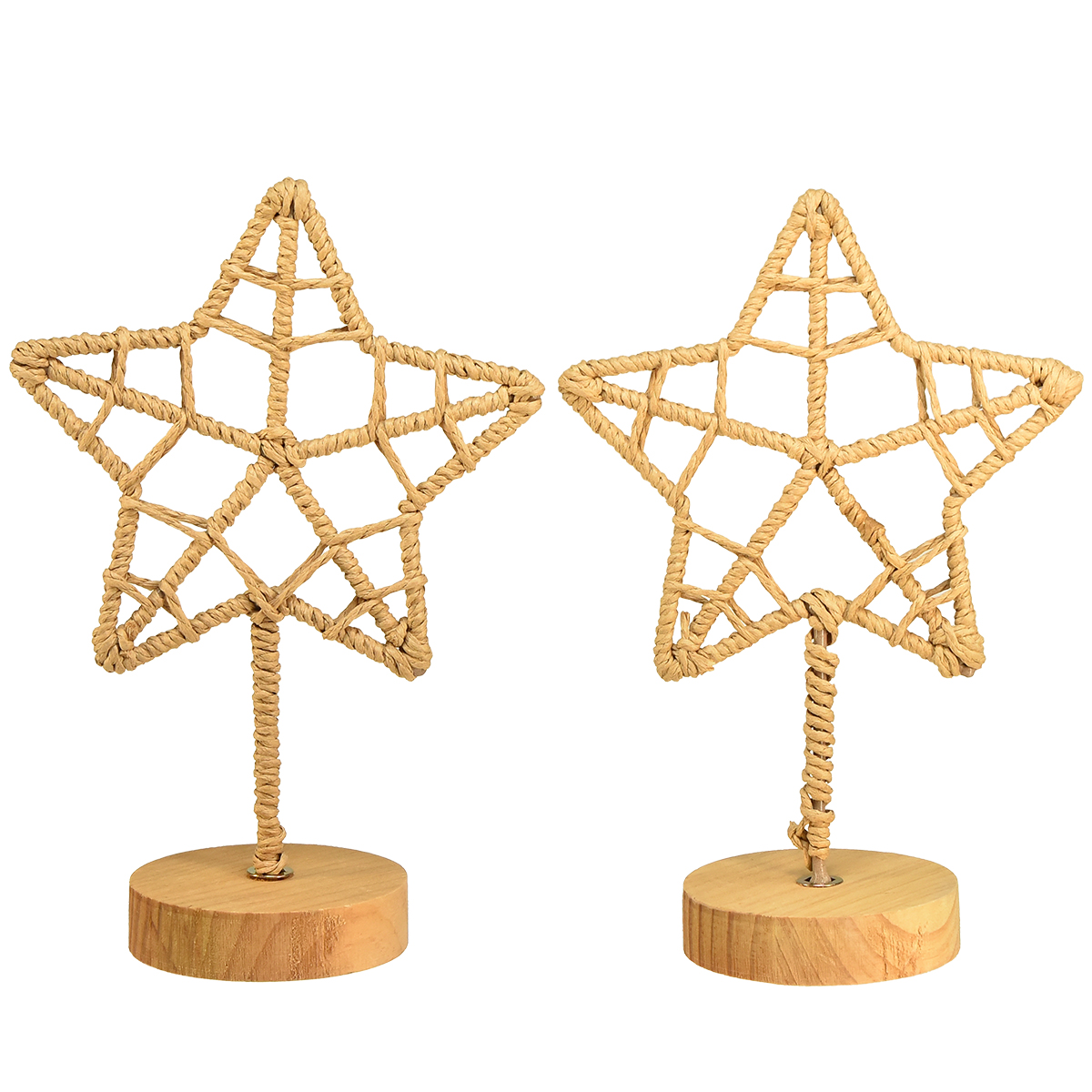 Produktnavn: Stjernedekor metall trestativ naturfiber Ø15cm 2stk