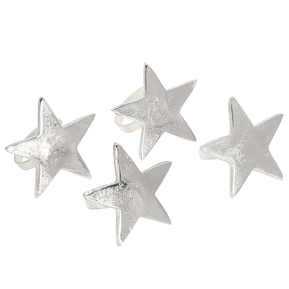 Stjerneformede serviettholdere, serviettringer i sølvmetall, 7 cm diameter, 4 cm, 4 stk.